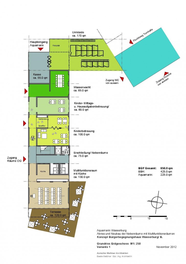 Die derzeitigen Nutzungen der multifunktionalen Räumlichkeiten sind nach dem jetzigen Bedarf ermittelt. Um eine stetige Auslastung der Räume zu sichern, können alle Räumlichkeiten ohne größere Eingriffe den zukünftigen Bedürfnissen angepasst werden. So kann die Gemeinde Wasserburg nachhaltig eine langfristige Auslastung des Bürgerbegegnungshauses nachweisen. Das Gebäude ist durch seine multifunktionale Bauweise ein stetiger Garant, die Bedürfnisse der Gemeinde und der ortansässigen Vereine sowie der Bürger zu befriedigen.